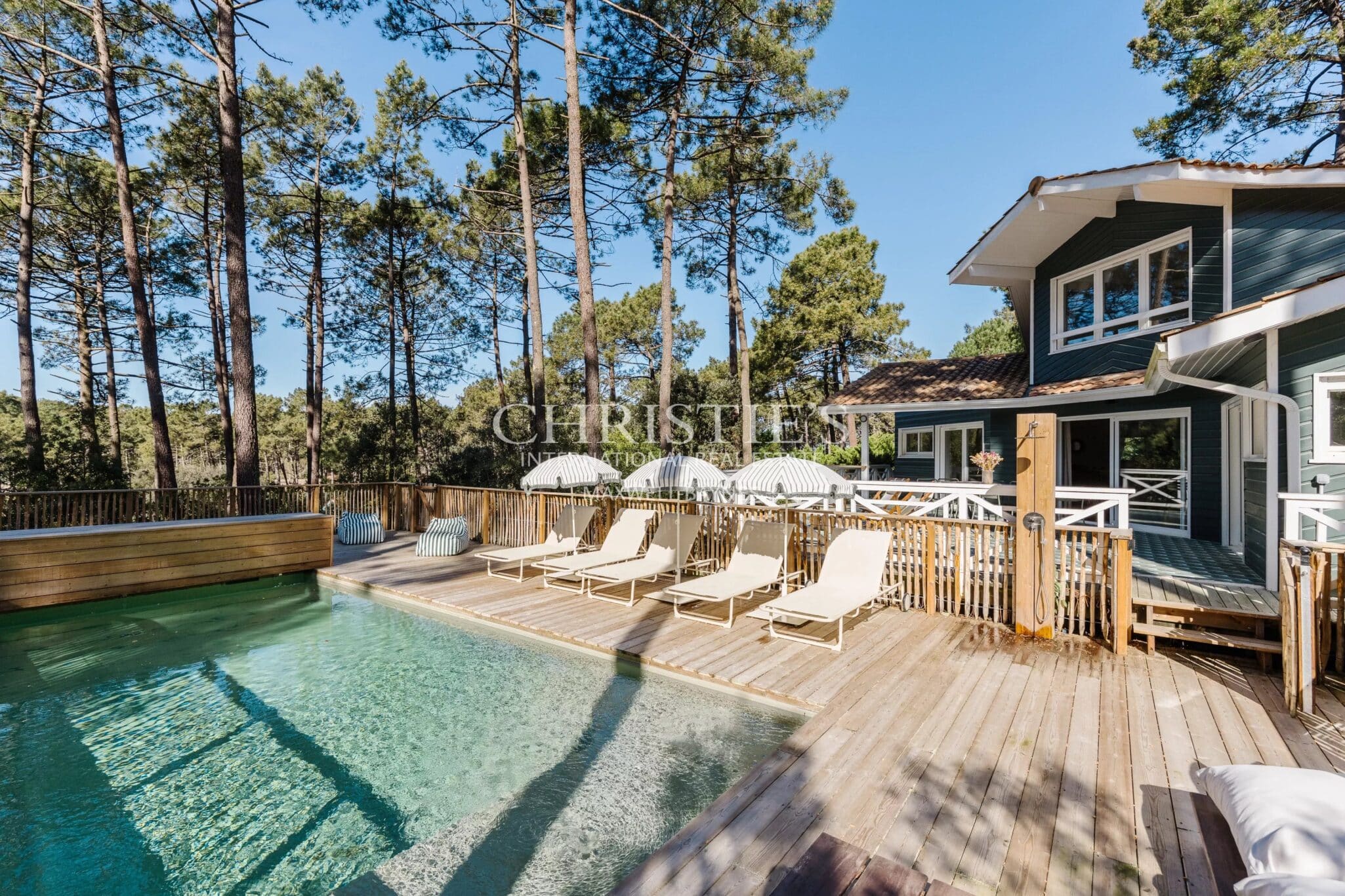 Outside, everything is designed to fully enjoy the beautiful days: an elegant heated pool measuring 8x4 meters, a pétanque court for convivial moments, and an exceptional wooded environment that invites disconnection.