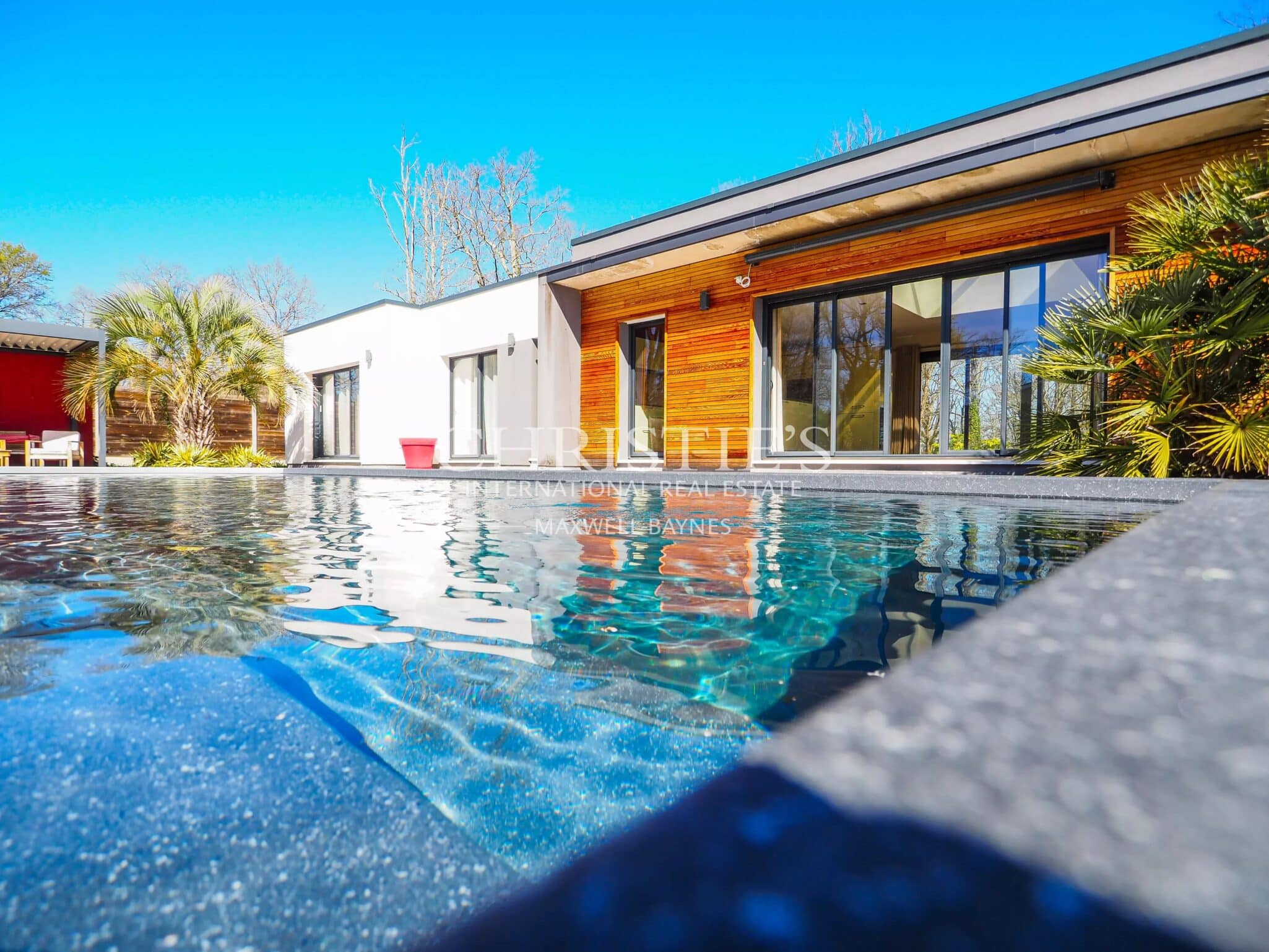 Protégée par un portail électrique privatif, elle s’épanouit sur un parc paysager de plus de 7 000 m² agrémenté d’une piscine, conjuguant modernité épurée, sérénité absolue et élégance intemporelle, à deux pas des écoles, commerces etc.