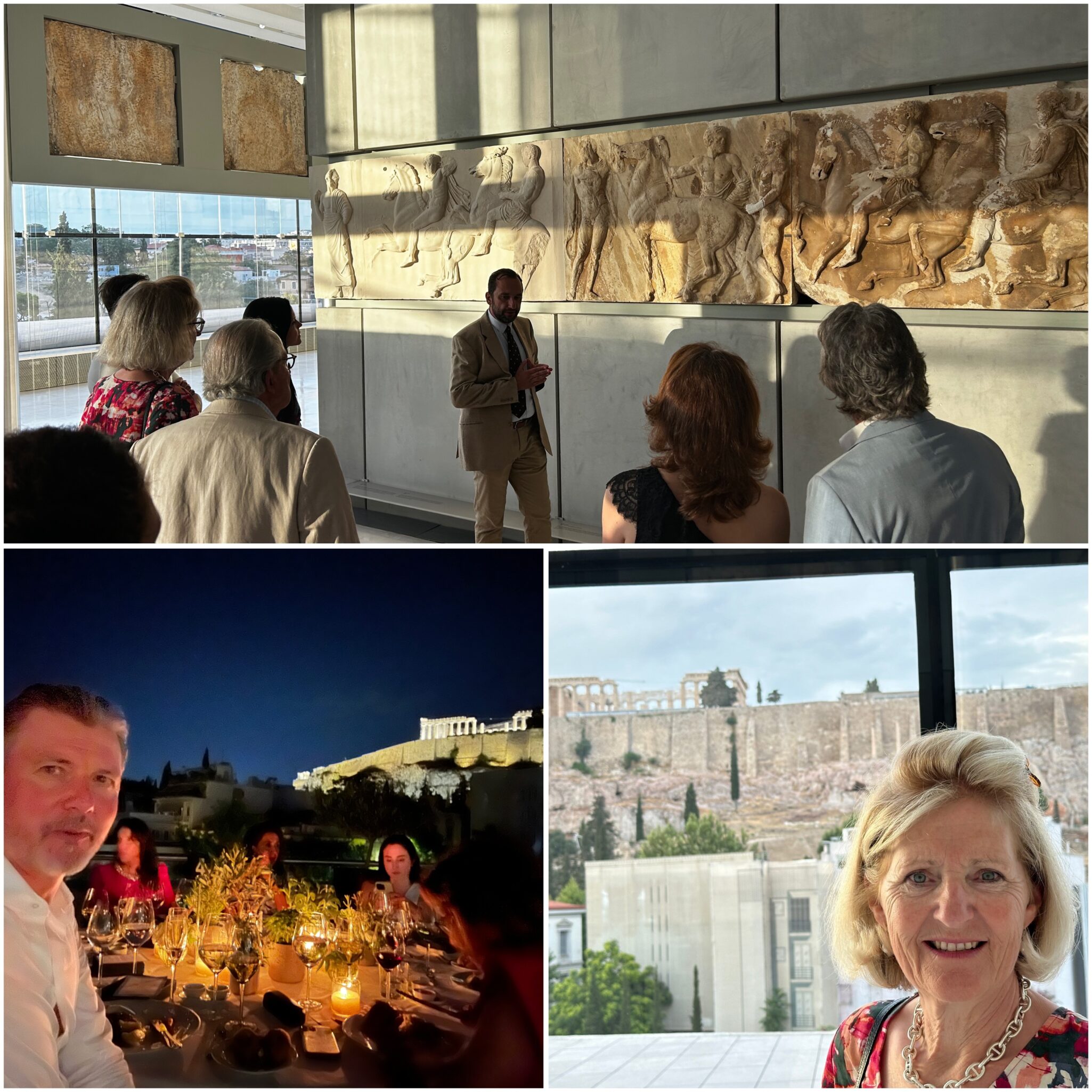 Une visite privée du Musée de l’Acropole climatisé a offert une pause de bienvenue face à la chaleur de 40 degrés. Les artefacts, l’histoire et les légendes présentés au musée ont plongé les invités dans une ambiance propice aux célébrations du soir, qui ont eu lieu sur la terrasse du musée, sous le majestueux éclairage de l’Acropole.
